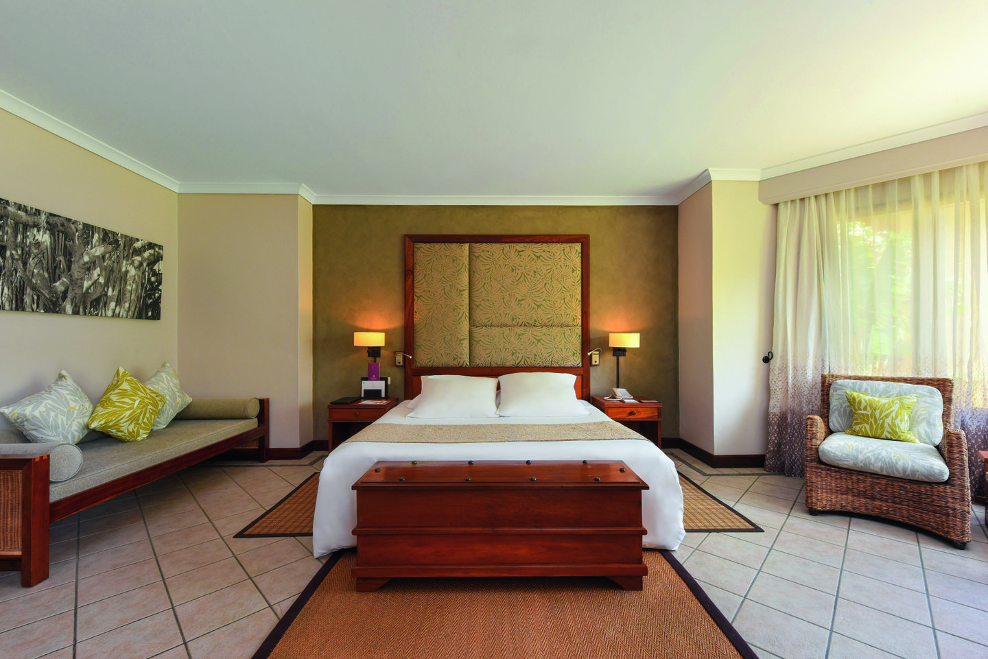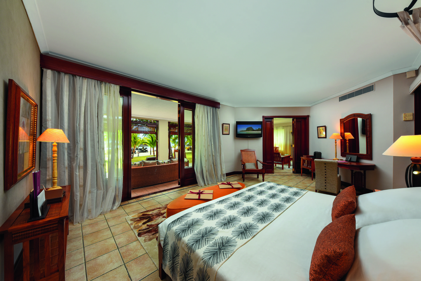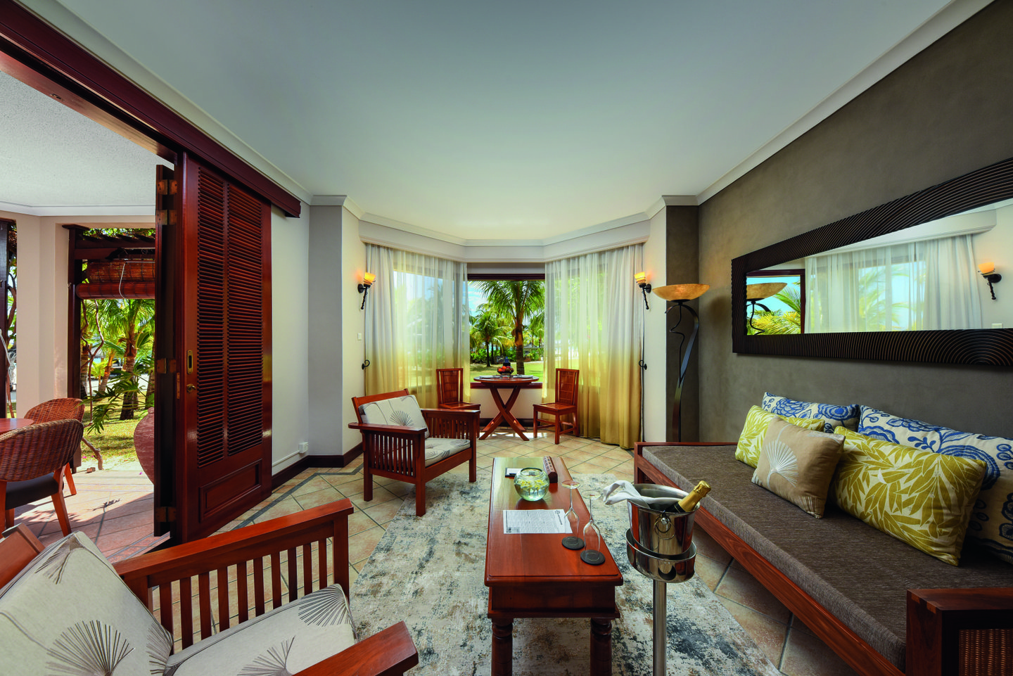 Generous family suite with garden or tropical views, perfect for families